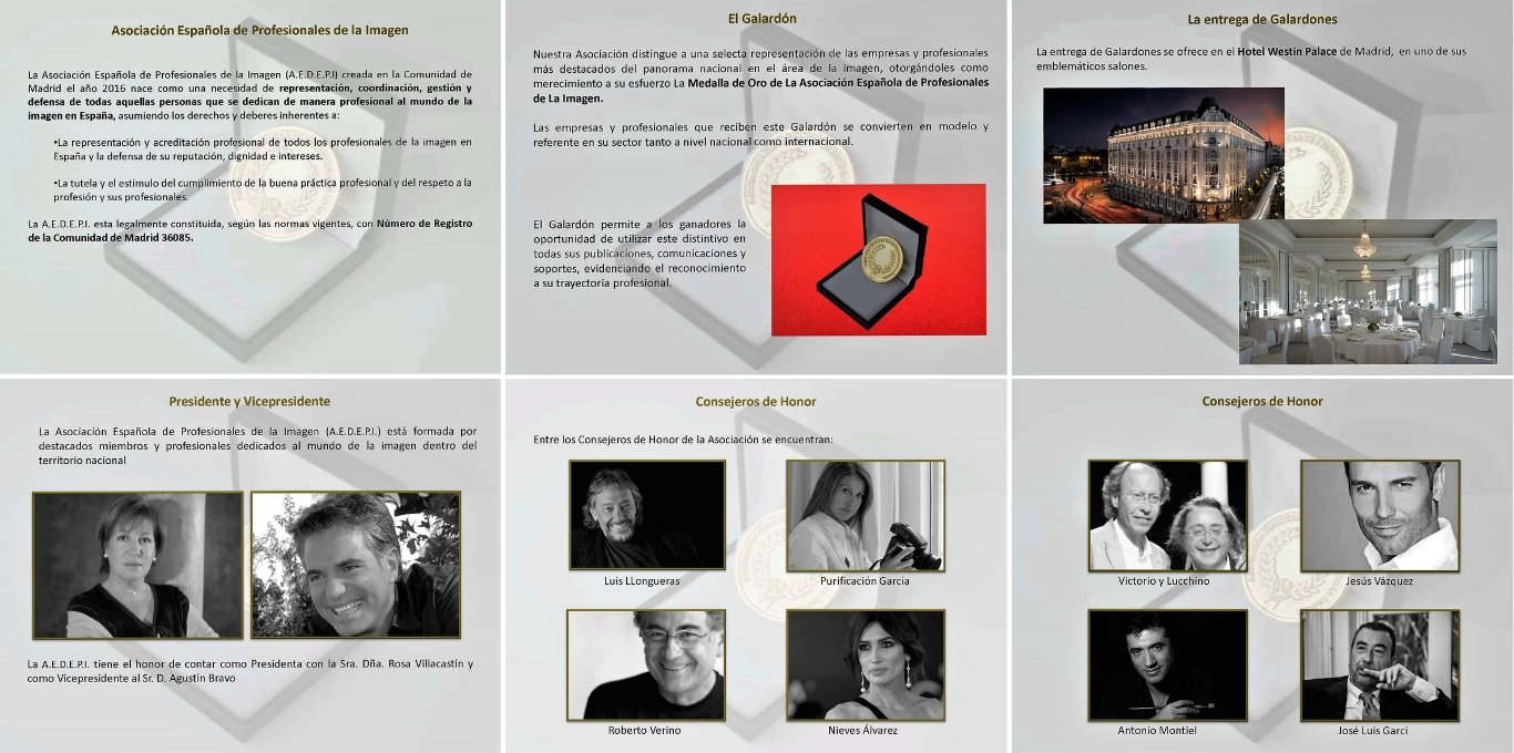 He tenido el honor de recibir la Medalla de Oro de la Asociación Española de Profesionales de la Imagen, un reconocimiento que respalda nuestra dedicación al sector y el compromiso constante por marcar la diferencia en cada propuesta.
