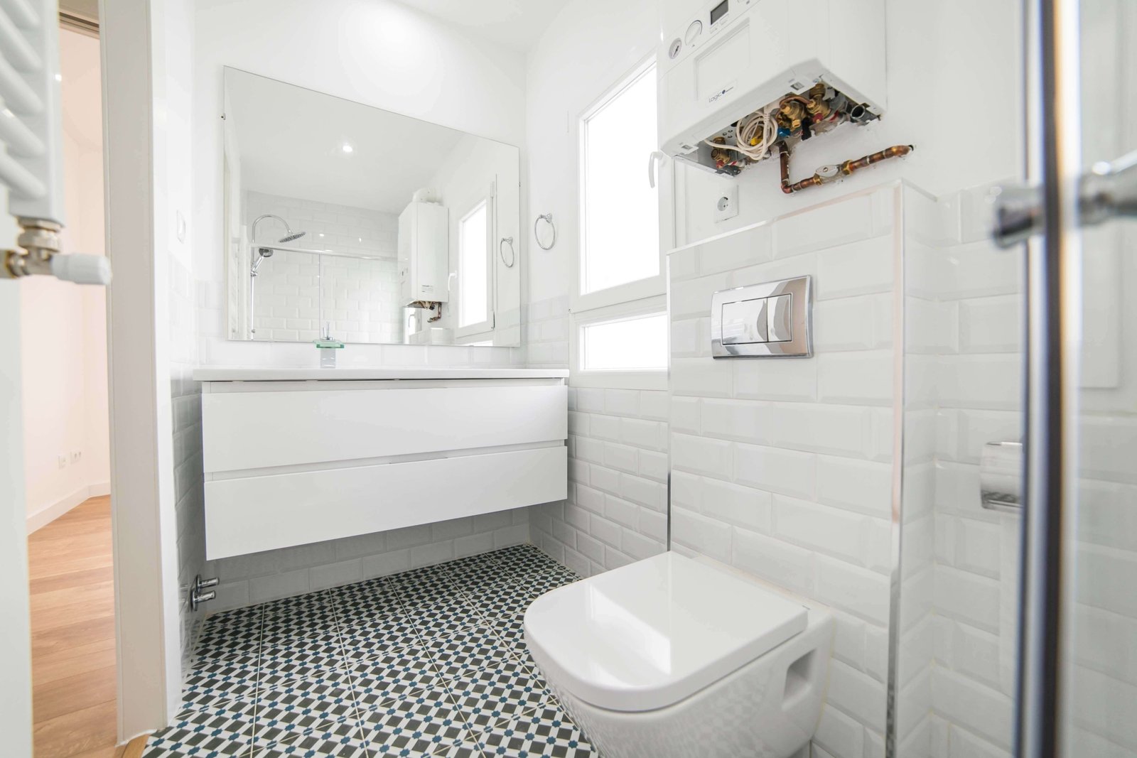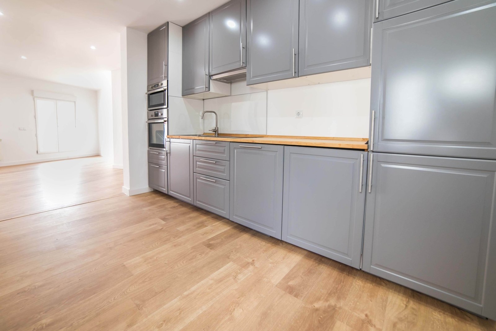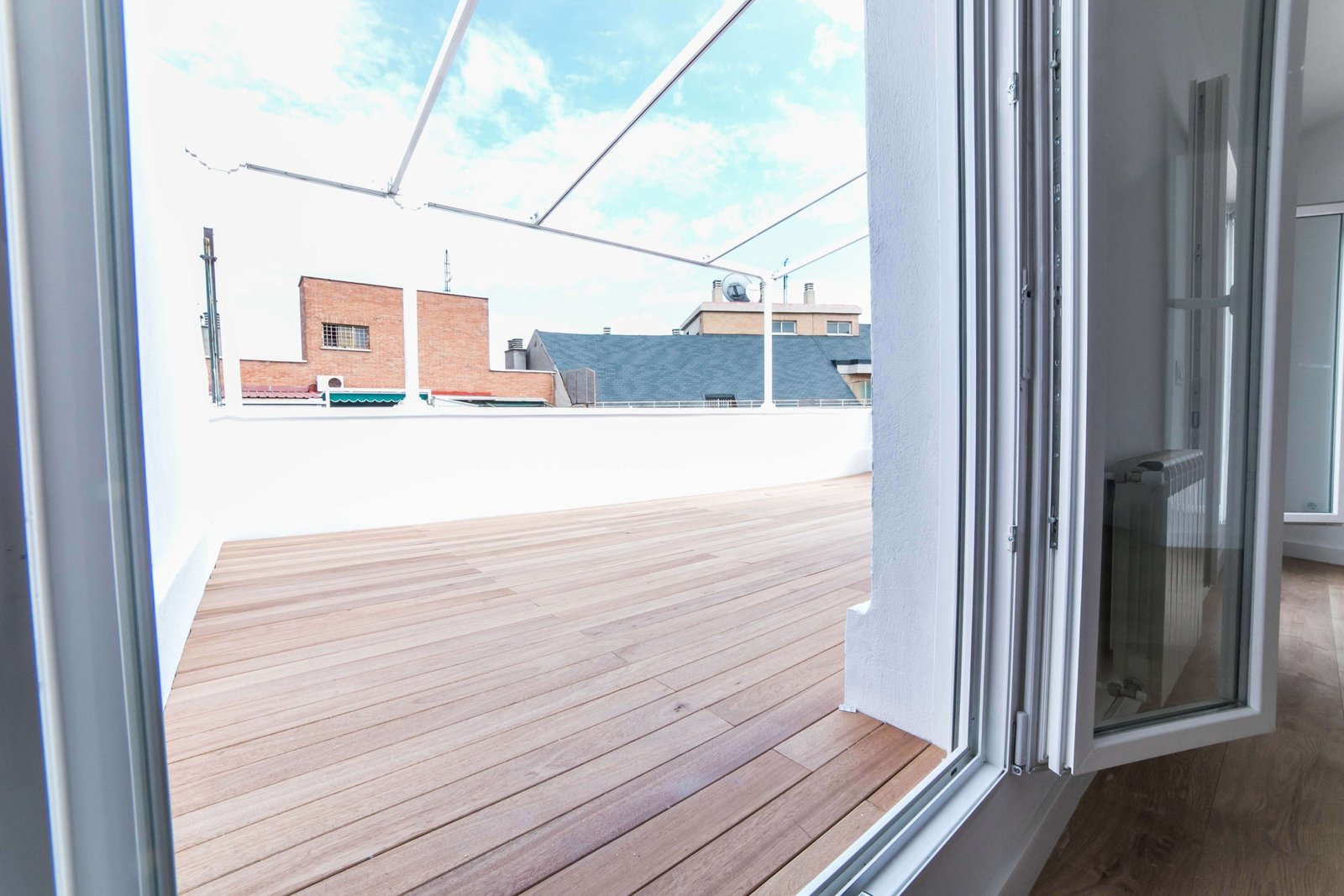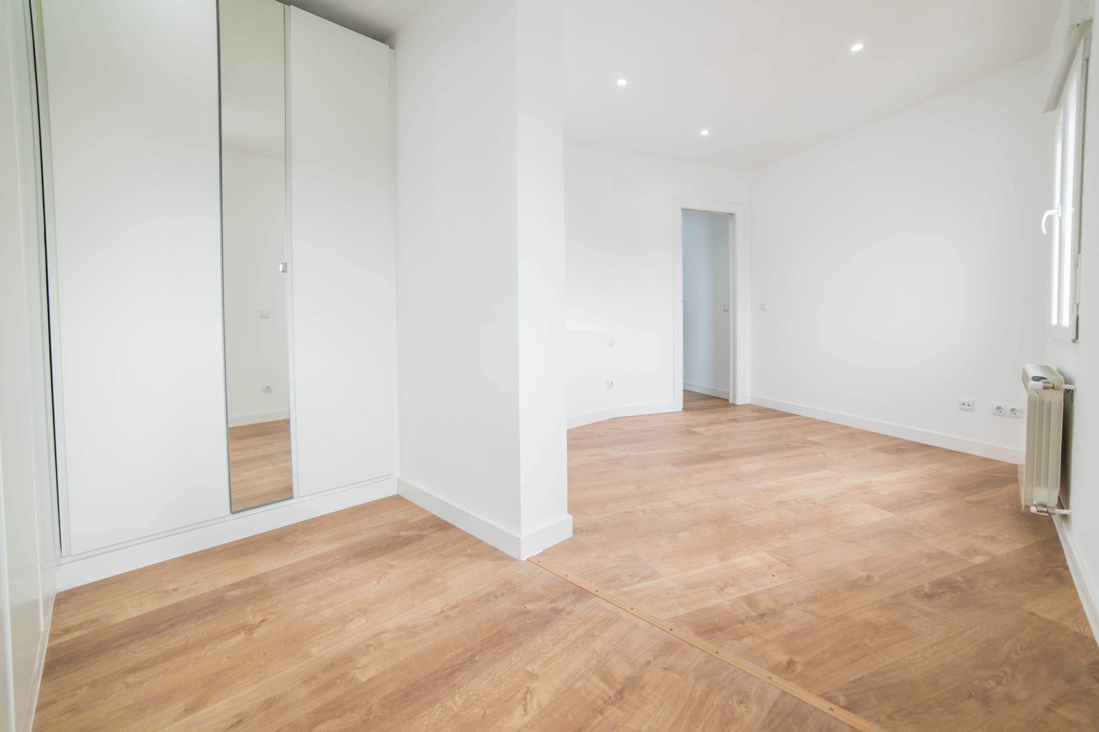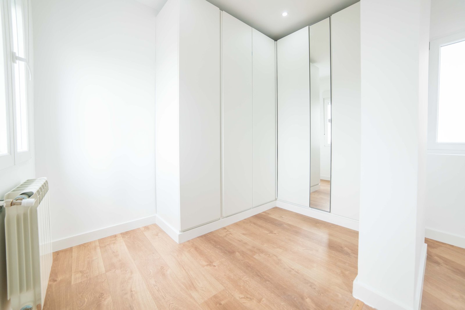 Piso de dos dormitorios en sexta planta de edificio, en esta reforma también reformamos la terraza. Se realizó demolición completa del mismo, incluso de muro de carga para transformación de dos dormitorios en un solo dormitorio con vestidor que incluye dos armarios abatibles hasta el techo. Cocina totalmente equipada con muebles bajo y alto.