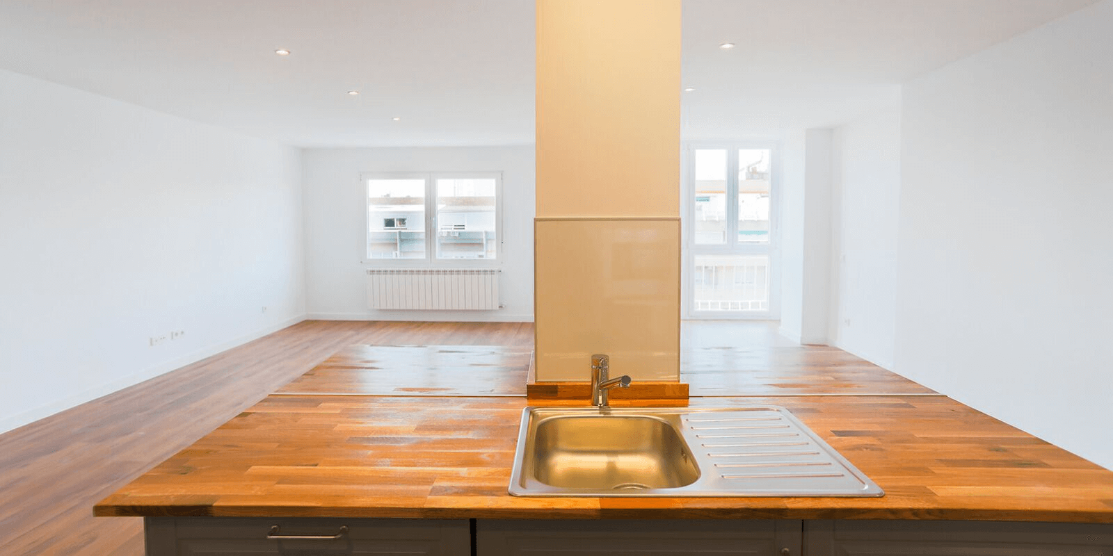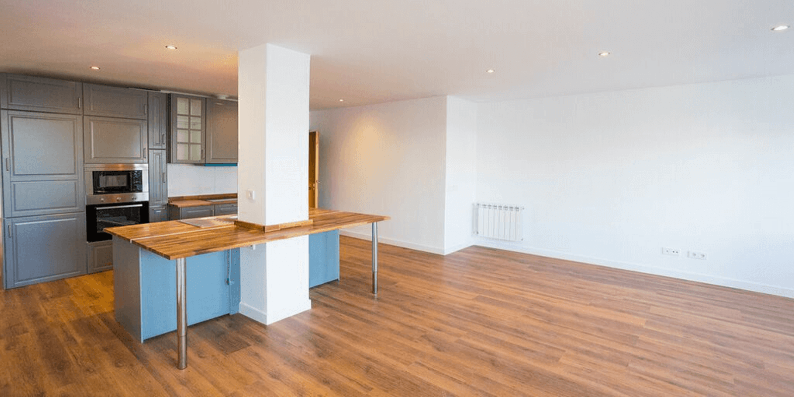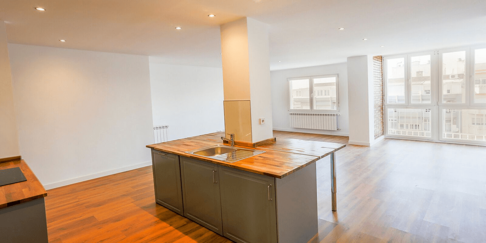 Piso de dos dormitorios transformado en piso de tres dormitorios, se amplió la terraza del salón y se integró la cocina (totalmente equipada) al mismo, dejando una isla decorando el pilar que quedaba en el centro de la vivienda. El piso constaba de dos baños, de los cuáles uno fue trasladado de ubicación.