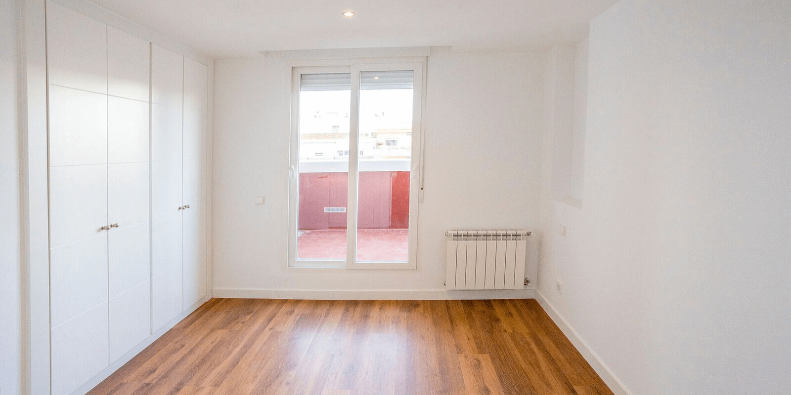 Esta reforma incluye ventanas de aluminio abatible/ oscilobatiente, con cristal climalit rotura térmica, tarima de madera AC5 color roble oscuro, rodapiés de 12 cm lacados en blanco, puertas macizas lacadas también en blanco. Los dormitorios constan de armario empotrados blancos y revestidos, incluyendo cajoneras, baldas, perchero y maletero. Instalación de aire acondicionado, suministro de fontanería y electricidad nuevo. Iluminación lámparas tipo LED de empotrar y techo falso en pladur en cortineros.